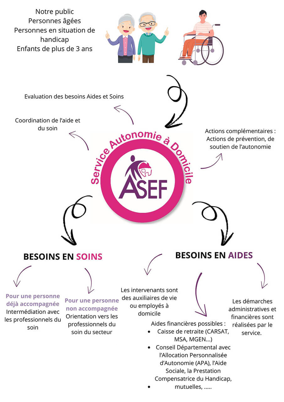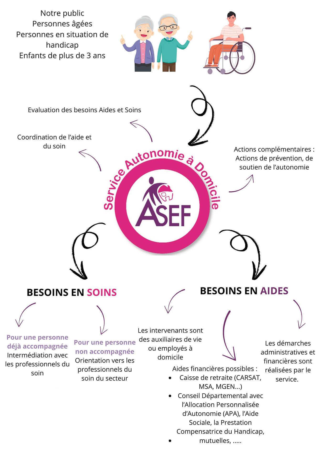 ASEF est depuis le 30/06/2025, Service Autonomie à Domicile (SAD) Aides. Son fonctionnement est le suivant :